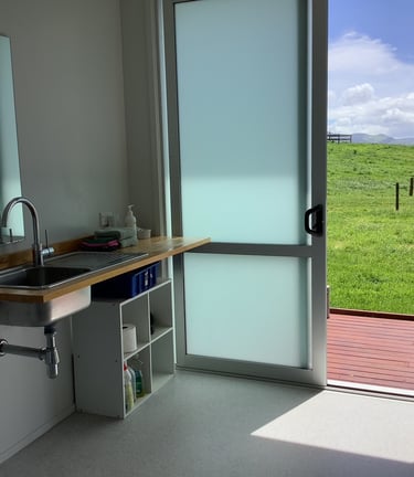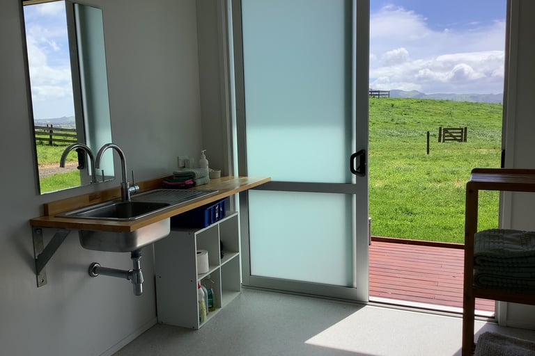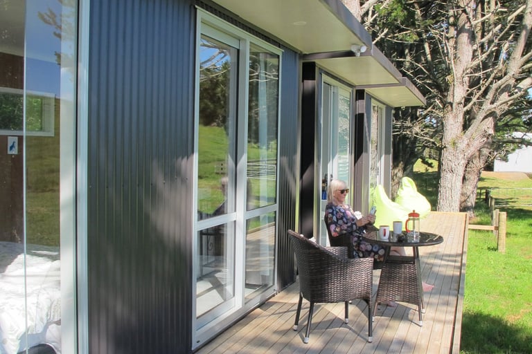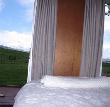Welcome to our little slice of bliss, with stunning views in front and beautiful native bush behind. Go the sleep at night listening to the Ruru (Morepork) and wake to the dawn chorus with a magical view looking out over the Waihi basin, right from your bed.