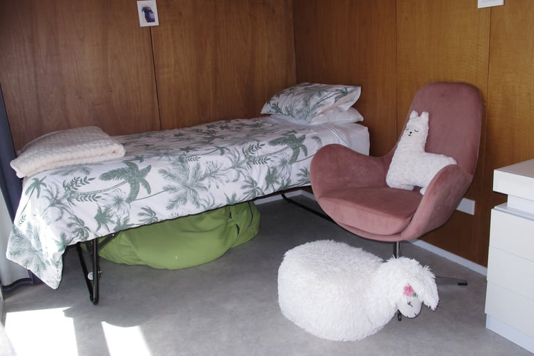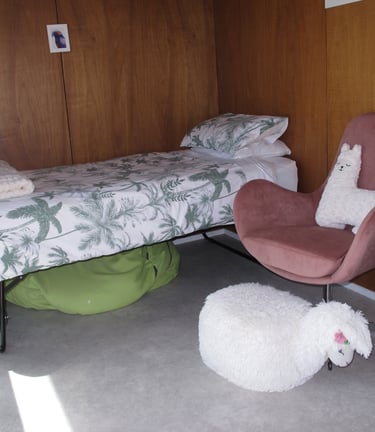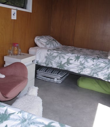Rimu cabin has a queen single and a standard single plus a comfy chair.